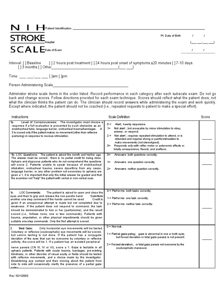 Printable Nih Stroke Scale